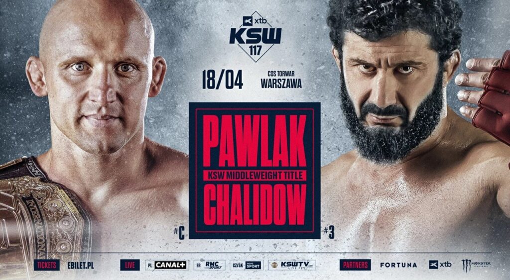 Już 18 kwietnia podczas gali XTB KSW 117 dojdzie do niesamowitej konfrontacji na szczycie wagi średniej. Niepokonany od blisko siedmiu lat i dzierżący pas mistrzowski Paweł Pawlak (25-4-1, 11 KO, 4 Sub) stanie do obrony tytułu przeciwko fenomenalnemu byłemu mistrzowi tej kategorii, Mamedowi Chalidowowi (38-8-2, 17 KO, 17 Sub). Ta wielka batalia będzie zwieńczeniem fantastycznej gali zorganizowanej na COS Torwar w Warszawie.
